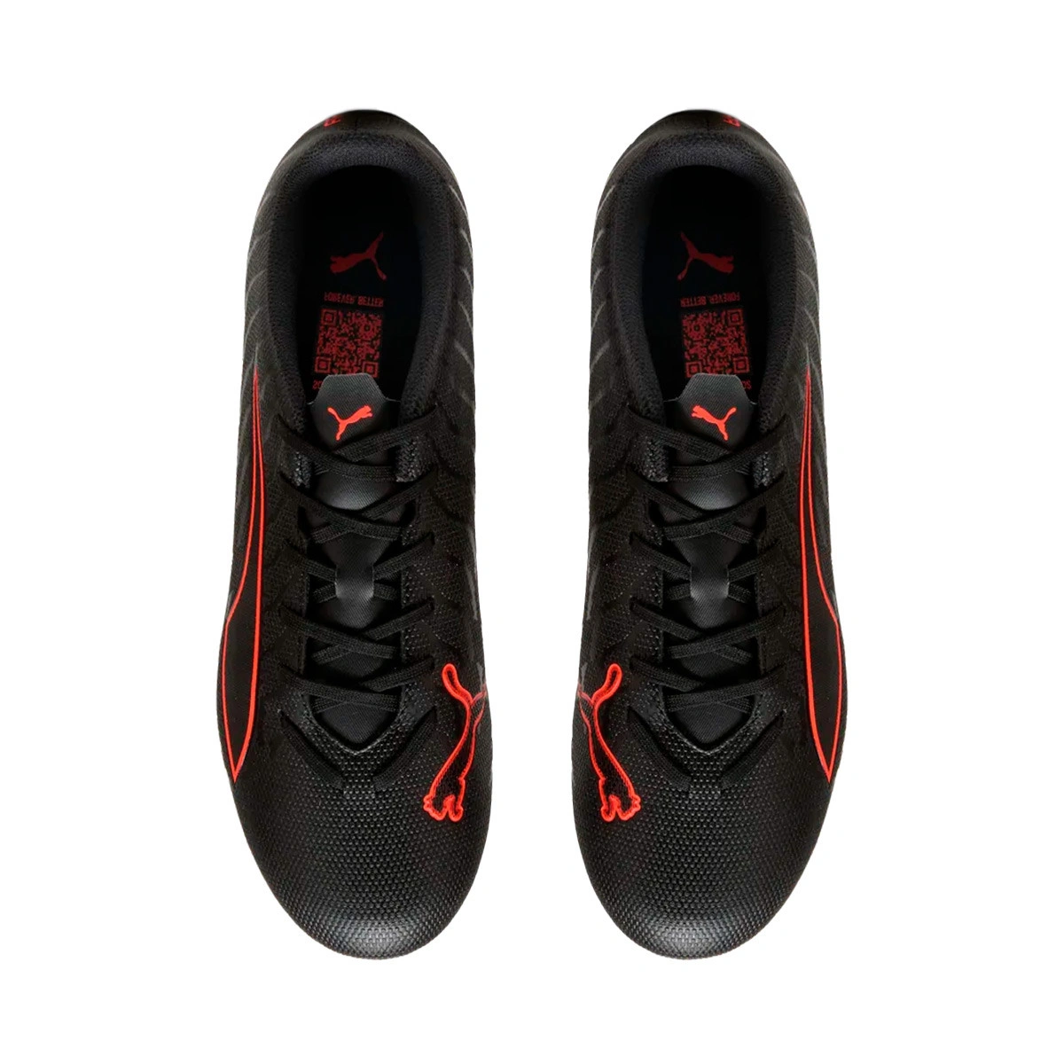 Scarpe da calcio per adulti Puma Ultra 6 Play FG/AG. Sintetiche, da usare su campi in erba artificiale e naturale. Di gamma bassa e disponibili nella colorazione Puma Black-Puma Red-Strong Gray.