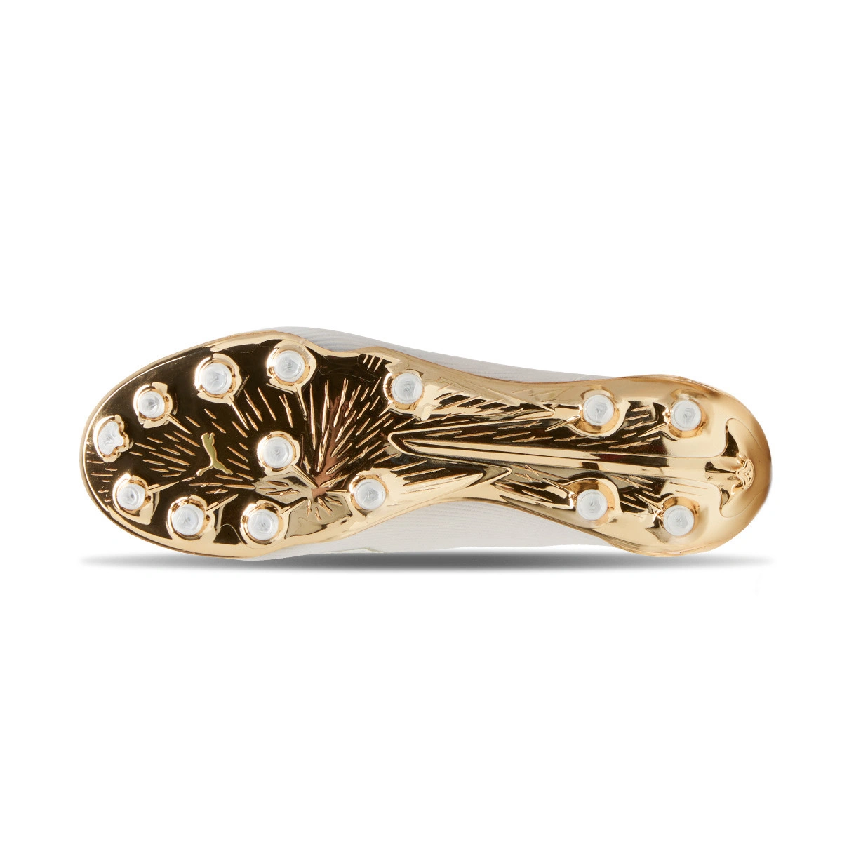 Scarpe da calcio Puma Ultra 6 Ultimate AG. In microfibra, da utilizzare su campi in erba sintetica. D'alta gamma, disponibili nella colorazione White-Metallic Gold-Black.
