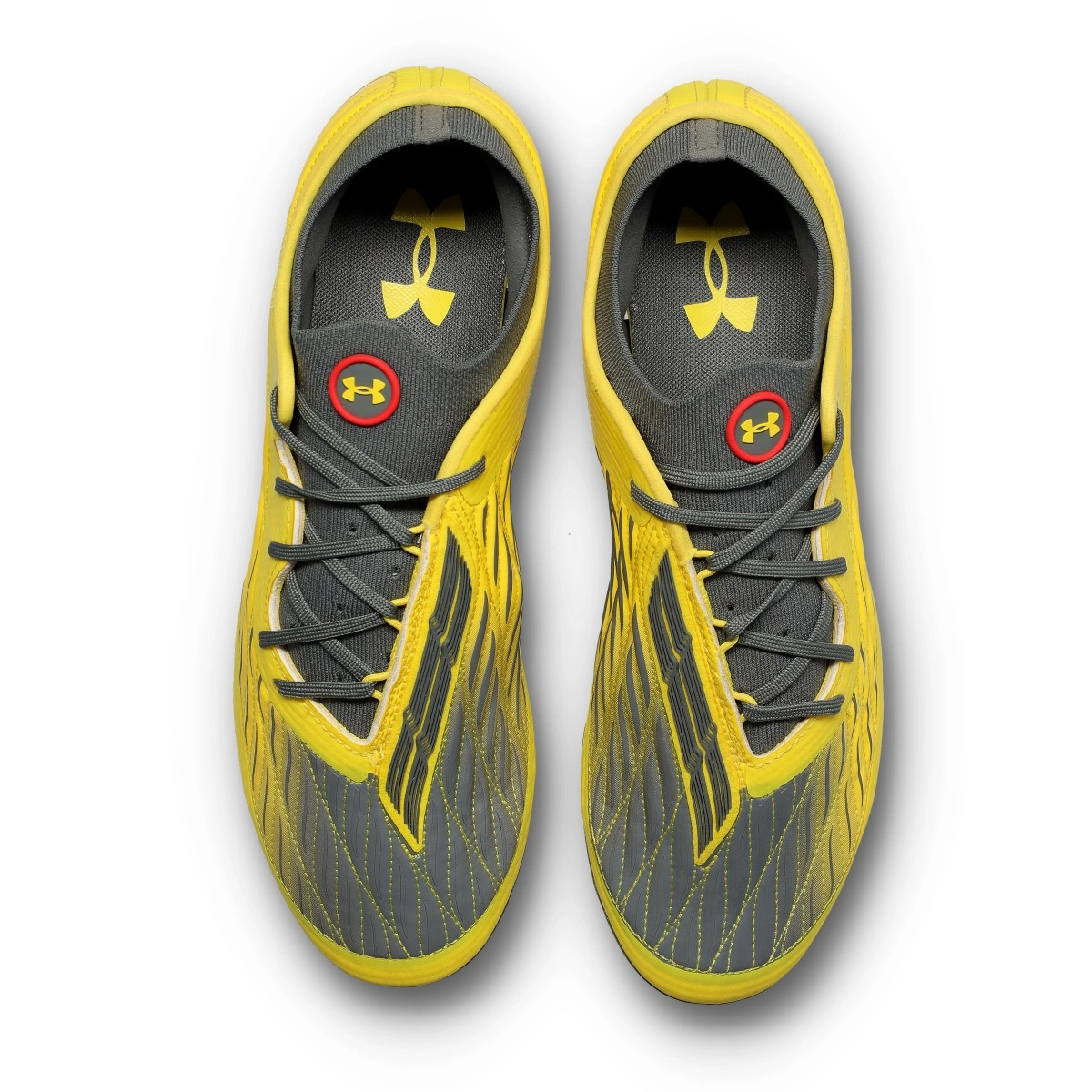 Tomaia dotata della tecnologia UA Clone che fornisce un adattamento personalizzata in qualsiasi misura. Strato interno in un materiale flessibile che si adatta al piede per adattarsi in modo preciso, come se fosse un guanto. Stampa 3D per migliorare il tocco e il controllo e silicone per le zone di contatto, in modo da tirare meglio.