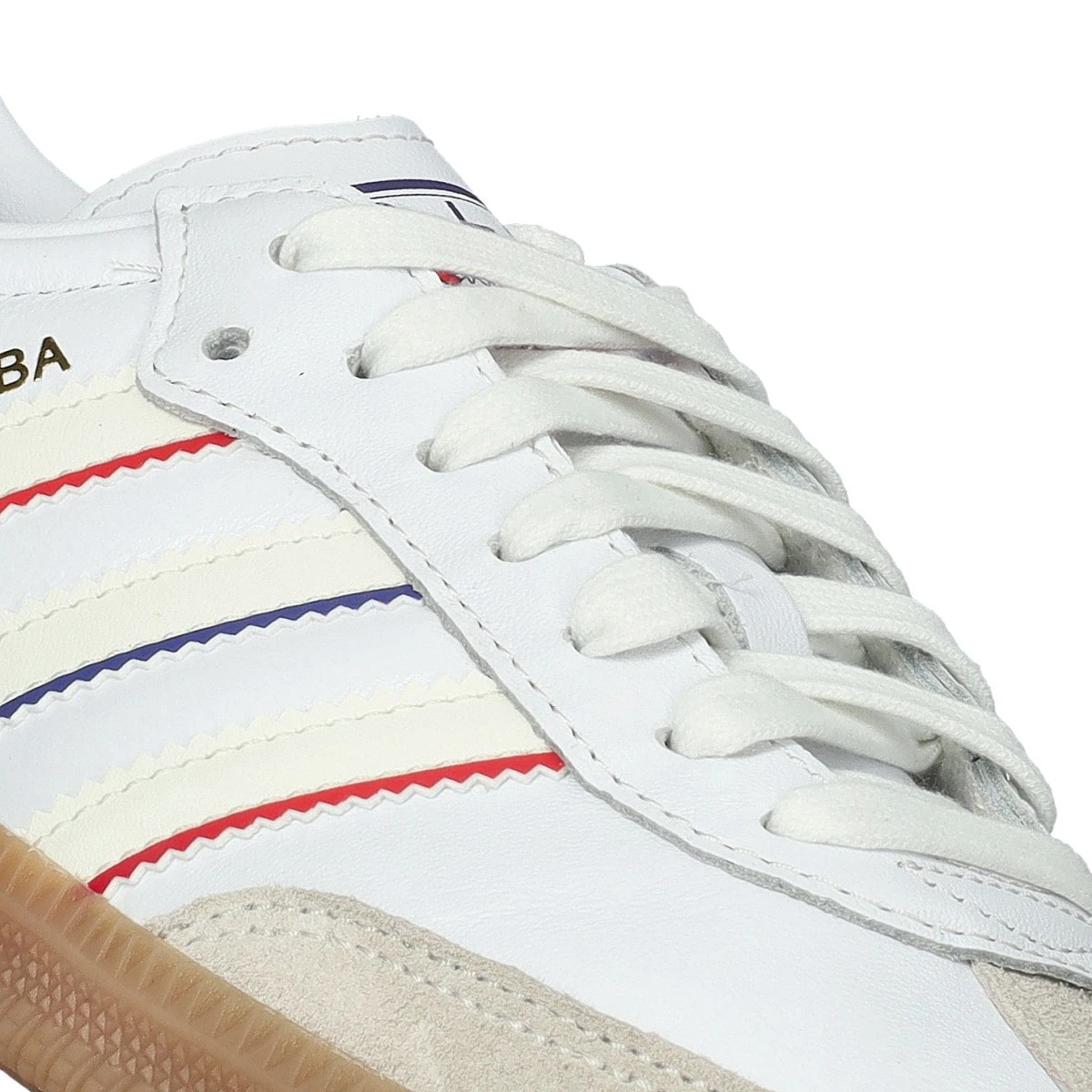 Create per i tifosi dell'Olympique Lione per mostrare il loro stile calcistico anche fuori dallo stadio. Essendo un'icona delle calzature adidas, la scarpa Samba è famosa per la sua tomaia in morbida pelle e la punta in pelle scamosciata a forma di T. Questo paio è realizzato con i colori del primo kit dell'Olympique Lione e presenta uno stemma della squadra sul rinforzo del tallone, in modo che non ci si possa sbagliare sull'identità della propria squadra del cuore.