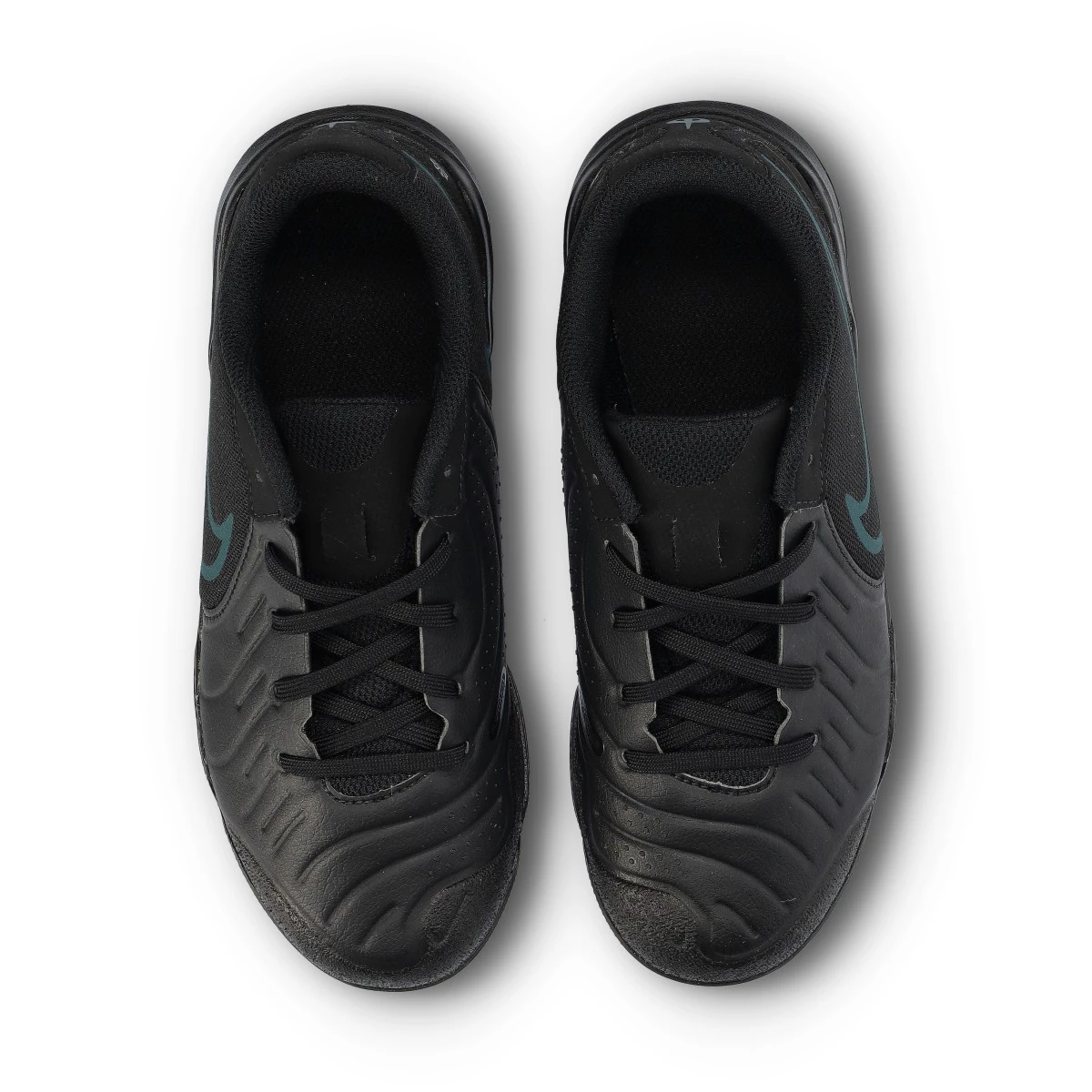 Scarpe da calcio a cinque per bambini Nike Tiempo Legend 10 Academy IC. In pelle, da usare su campi indoor. Di gamma pro e disponibili nella colorazione Black-Black-Deep Jungle.