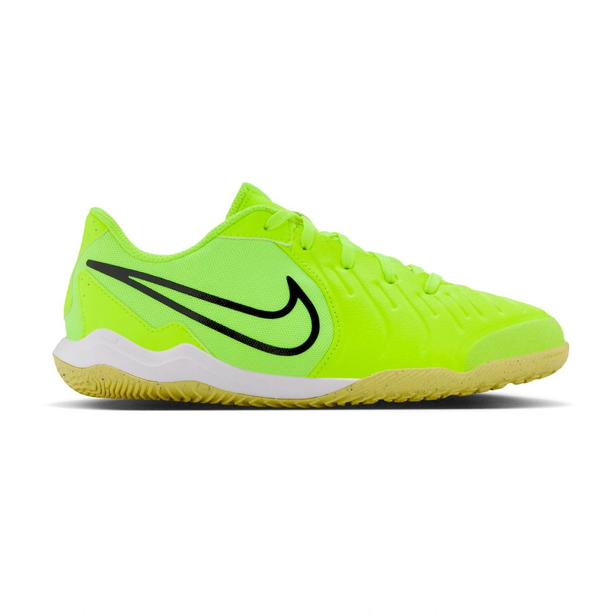Scarpe da calcetto per bambini Nike Tiempo Legend 10 Academy IC. In pelle, da usare su campi indoor. Di gamma pro e disponibili nella colorazione Volt-Black.