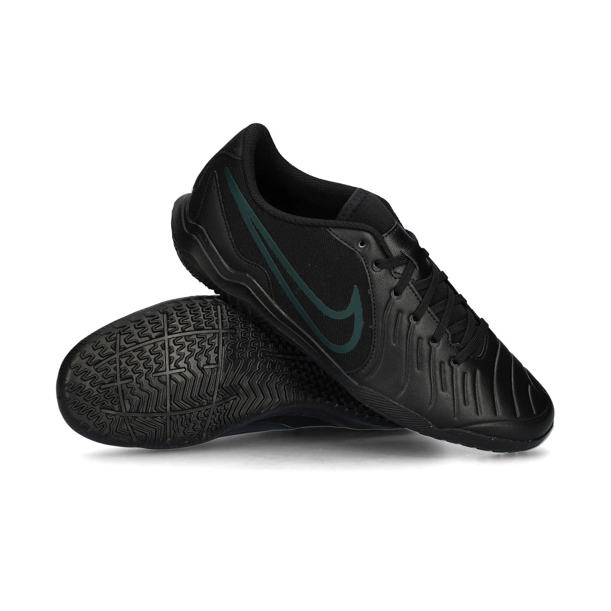 Scarpe da calcio a cinque Nike Tiempo Legend 10 Club IC. In pelle, da usare su campi indoor. Di gamma di iniziazione e disponibili nella colorazione Black-Black-Deep Jungle.