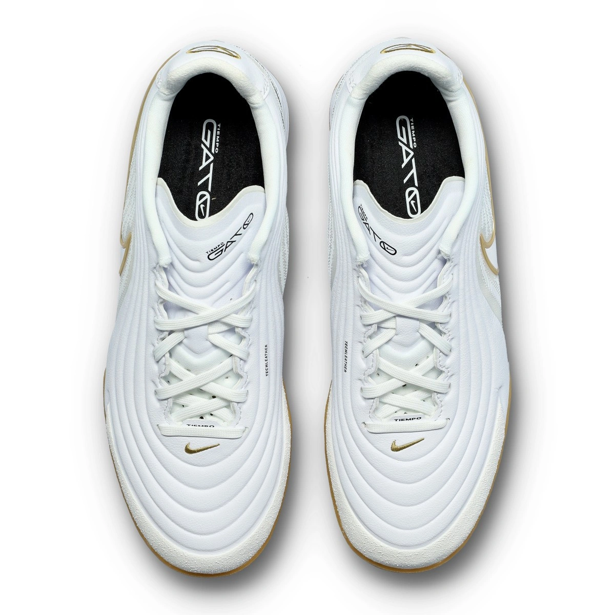Scarpe da calcetto Nike React Gato LE. In filato, da utilizzare su campi interni o esterni poco abrasivi. Le imbottiture flessibili aumentano il contatto con il pallone e l'ammortizzazione Nike React mantiene chi le indossa sempre in movimento mentre gioca o taglia in campo.