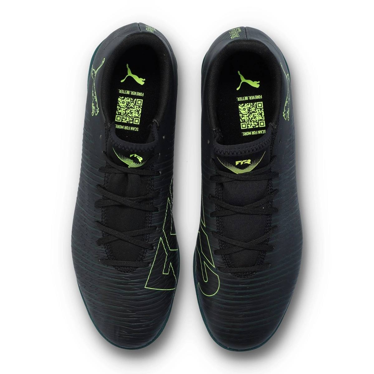 Scarpe da calcio a cinque Puma Future 8 Play IT. Sintetiche e da usare su campi indoor. Di gamma alta e disponibili nella colorazione Black-Fizzy Light-Green Terrain.