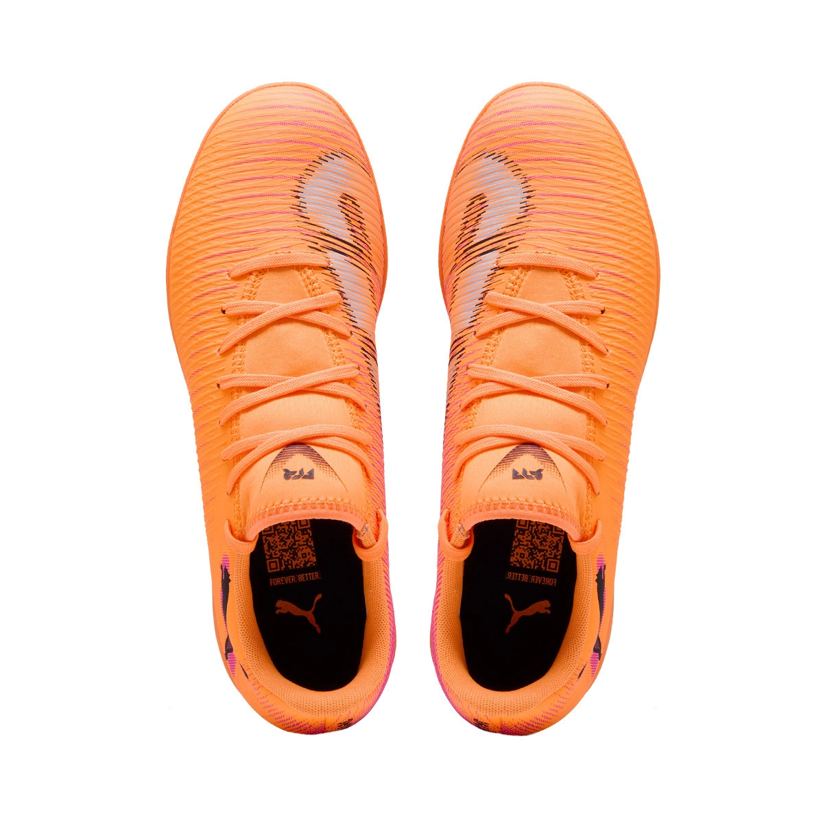 Scarpe da calcetto Puma Future 8 Play IT. Sintetiche da utilizzare su campi indoor. Di gamma alta e disponibili nella colorazione Heat Fire-Black-Ravish.