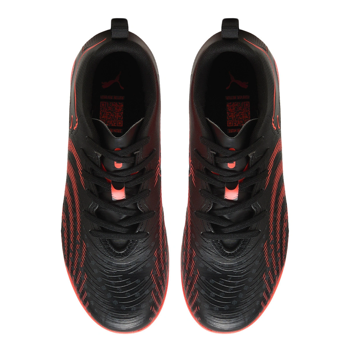 Scarpe da calcetto Puma Future 9 Play IT con lacci e per bambini. Sintetiche, da utilizzare su campi da calcio indoor. Di gamma alta e disponibili nella colorazione Puma Black-Glowing Red-Strong G.
