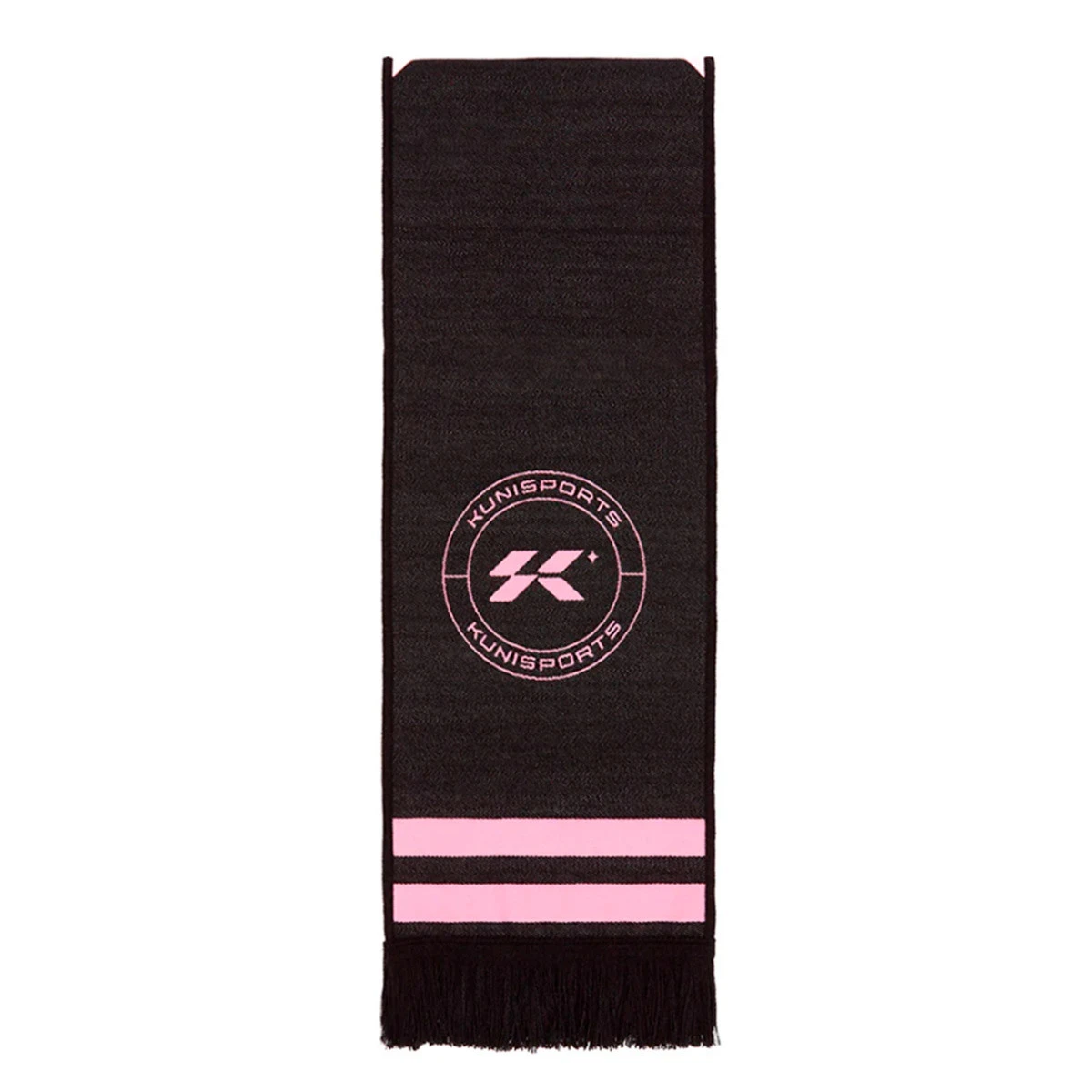 Sciarpa a maglia doppia Kings League Kunisports con frange decorative abbinate. Colore: nero e rosa.