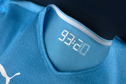 Con un riferimento a quel momento come elemento centrale della maglia, si vede come Puma Football e i responsabili del Manchester City non abbiano voluto allontanarsi troppo dalla linea delle prime maglie realizzate da quando collaborano con il marchio tedesco. Con il celeste come colore principale, la maglia si completa con tutti i dettagli e i loghi in bianco, oltre al dettaglio dell’orologio digitale sul colletto che segna quel tanto speciale minuto 93:20.